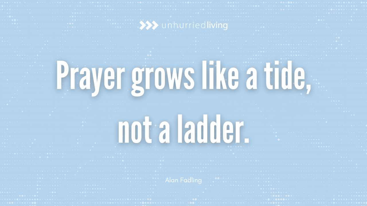 It’s a beautiful story. And it captures something essential about prayer and spiritual maturity. We hurry about with our buckets, trying to fill the bay ourselves. But the tide doesn’t need our help. Prayer isn’t something we make happen; it’s something we let happen.